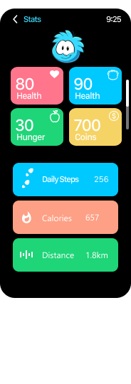 A gamified fitness focused smartwatch companion app paired with Disney's Club Penguin.